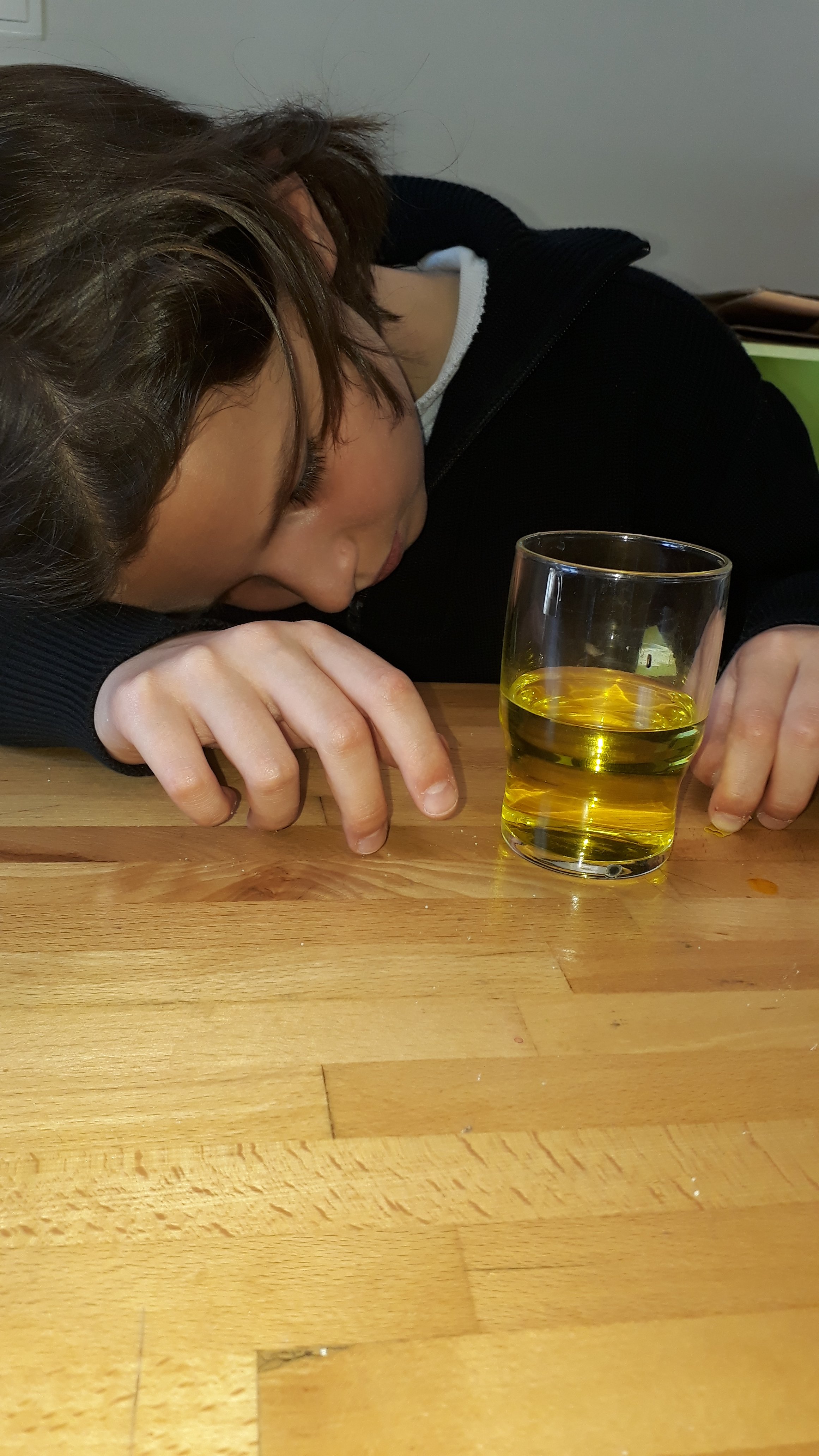 Des produits du quotidien: du vinaigre, de l’huile, du colorant alimentaire, du bicarbonate et de l’eau. Et nous pouvons réaliser de drôles d’expériences.