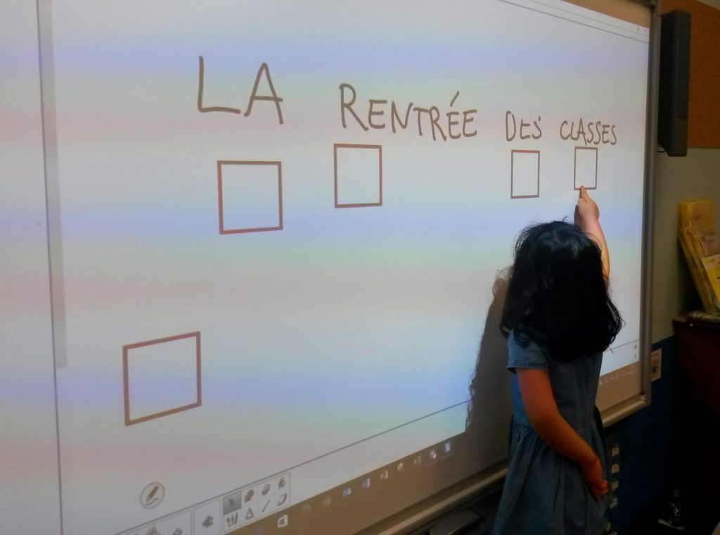 Dans la classe on a découvert le TBI (*Tableau Blanc Interactif), c’est un tableau magique où on peut écrire dessus avec le clavier, le crayon ou même avec le doigt !