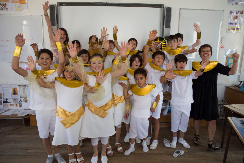 Après avoir découvert le tableau qu’ils allaient utiliser pour le spectacle, les élèves de CM1 ont pris le temps de découvrir l’Égypte Antique.